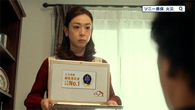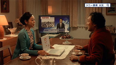 横田さんと遊井さんの演じる夫婦が、ソニー損保の火災保険をめぐってコミカルに立ち回ります。