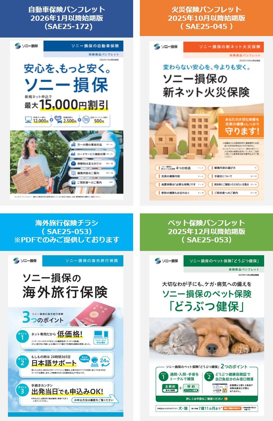 ソニー損保で使える商品パンフレット一覧(2026年3月更新)