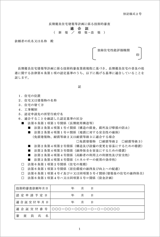 長期優良住宅の技術的審査適合証または長期使用構造等である旨の確認書の写しを提出するときのポイント