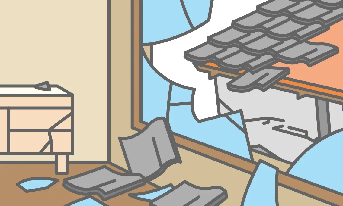 このように損害保険では、その損害が「何が原因で生じたか」で適用される補償が変わります。自然災害由来でない物体の飛来や落下、衝突は「飛来物や外部からの物体の衝突」で、台風や雹(ひょう)や雪による損害は「風災、ひょう災、雪災」で、地震や津波、噴火が原因で生じた損害であれば「地震保険」で補償されます。