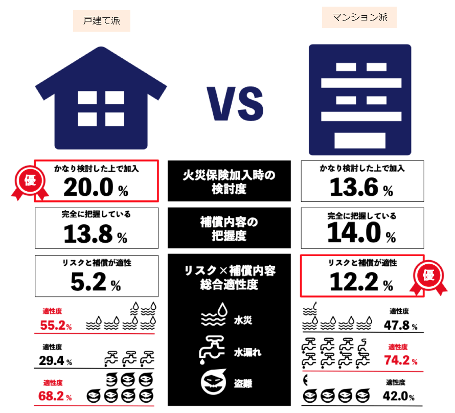 戸建て派・マンション派ともにリスクと補償内容が適正な人は約1割にとどまる。